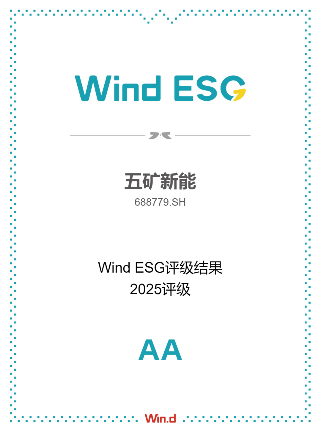 近日,五礦新能源材料(湖南)股份有限公司(證券代碼:688779.SH)在2024年度萬得(Wind)ESG評(píng)級(jí)中實(shí)現(xiàn)顯著提升,由BBB級(jí)躍升至AA級(jí),成功躋身國內(nèi)同行業(yè)ESG評(píng)級(jí)最高梯隊(duì)。此次評(píng)級(jí)提升充分彰顯了公司在環(huán)境責(zé)任(E)、社會(huì)責(zé)任(S)及公司治理(G)三大維度的卓越表現(xiàn),標(biāo)志著公司在可持續(xù)發(fā)展領(lǐng)域的工作取得較好成果。